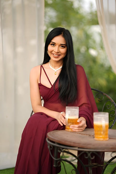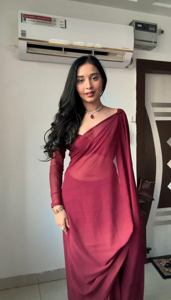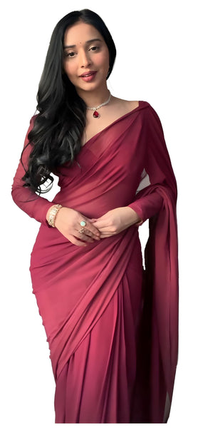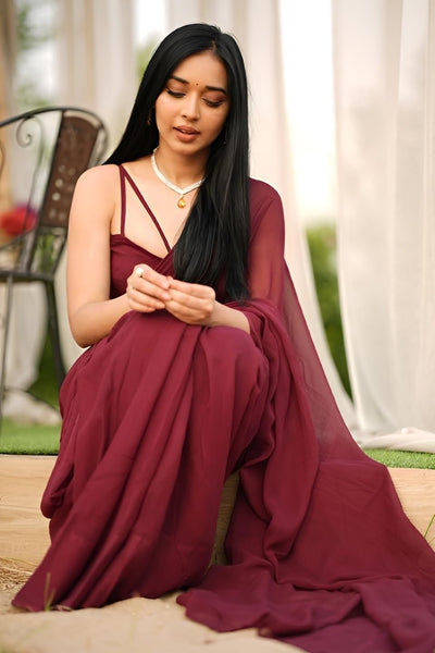 Stylescope Women's Plain Georgette Ready To Wear One Minute Saree With Unstitched Blouse Piece (Kalki Maroon_Maroon_Free Size)