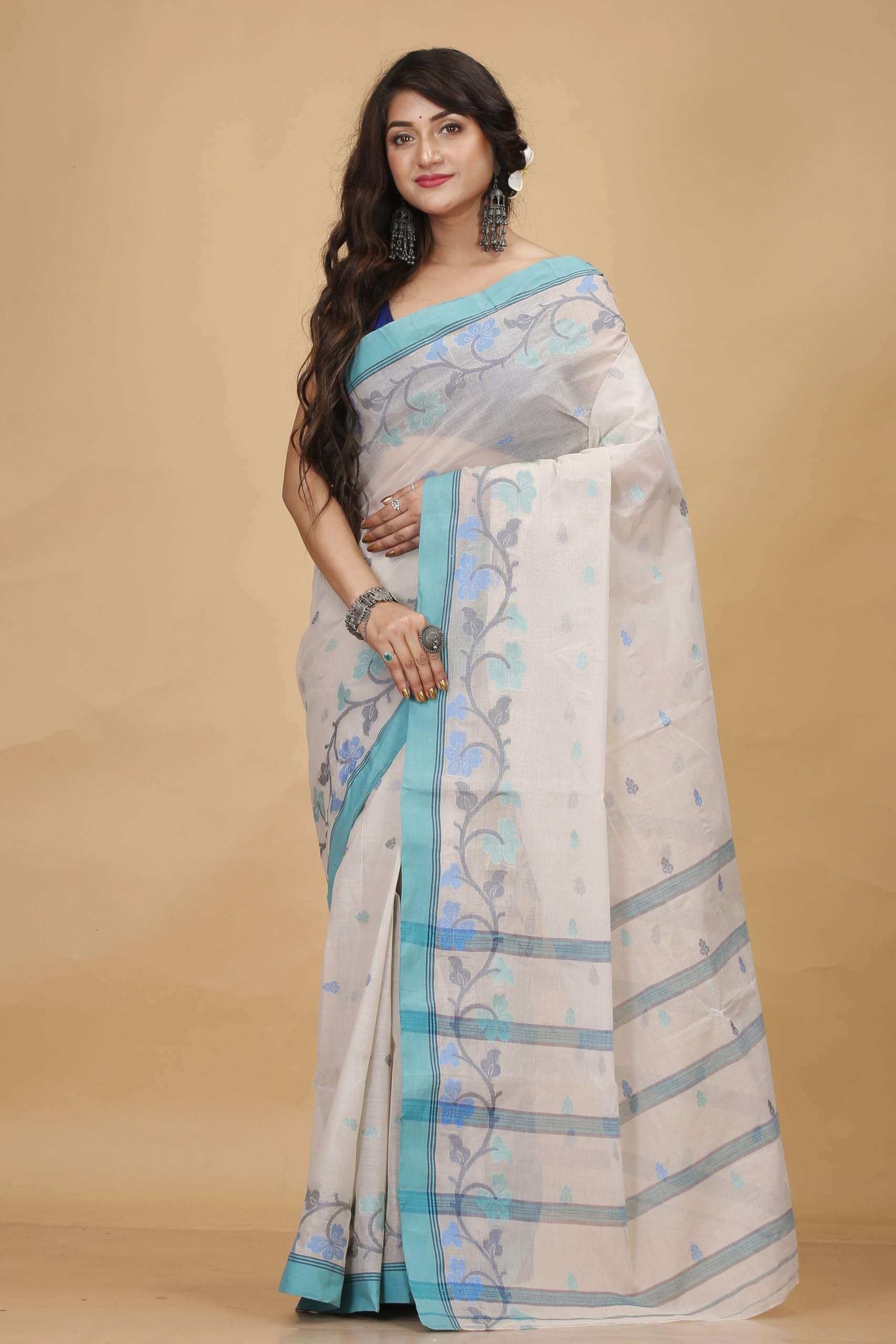 Tant Story Women's Traditional Bengal Trending Tant Handloom Pure Cotton Tangail Saree without Blouse Piece (Off White)