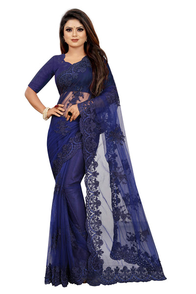 Vastraani Women's Cut Wok Embroidered Woven Net Saree with Blouse Piece (Blue, Free Size)