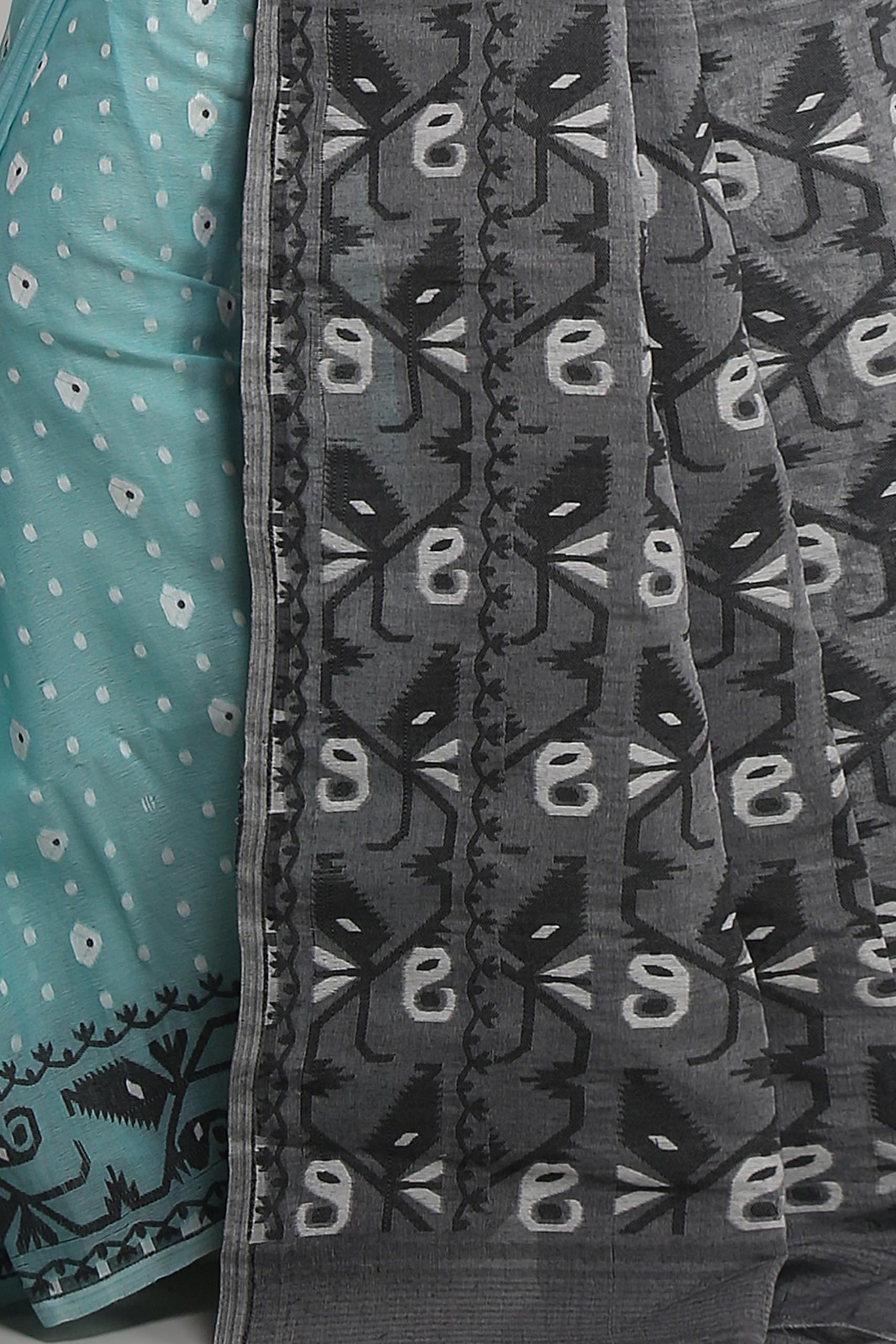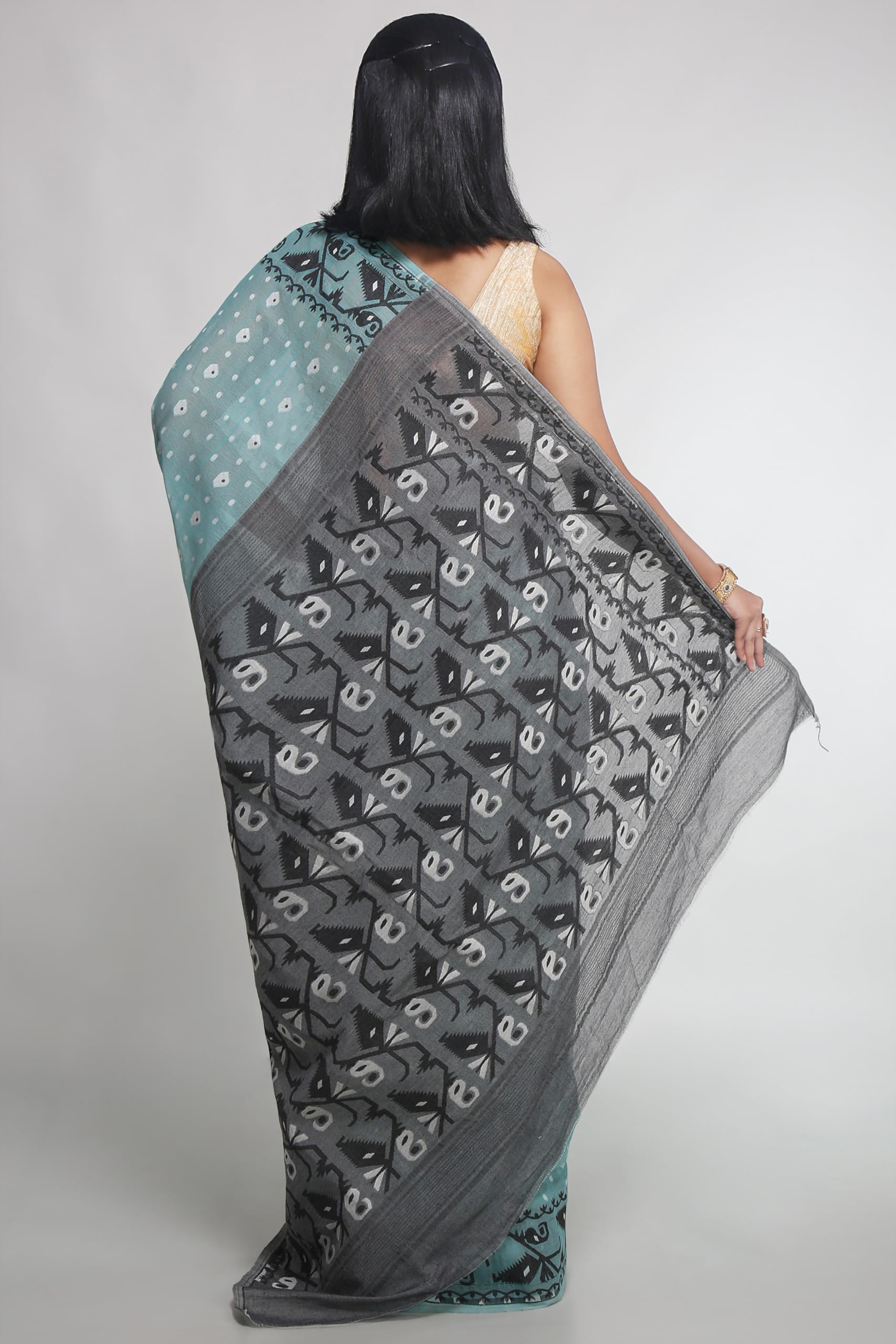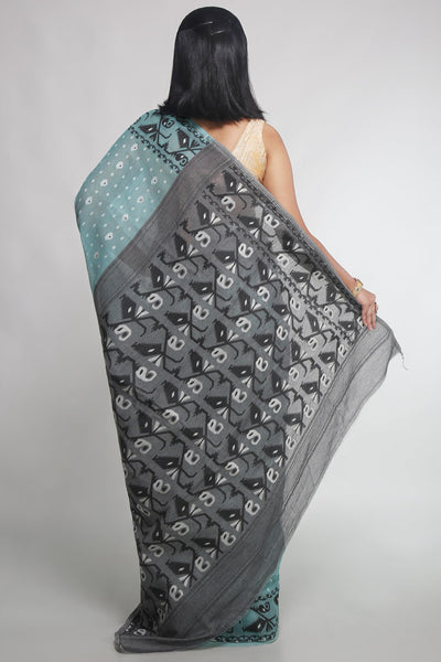 WoodenTant Women's Bengal Made Soft Dhakai Jamdani Saree Without Blouse Piece. (Beige & Green, Cotton)