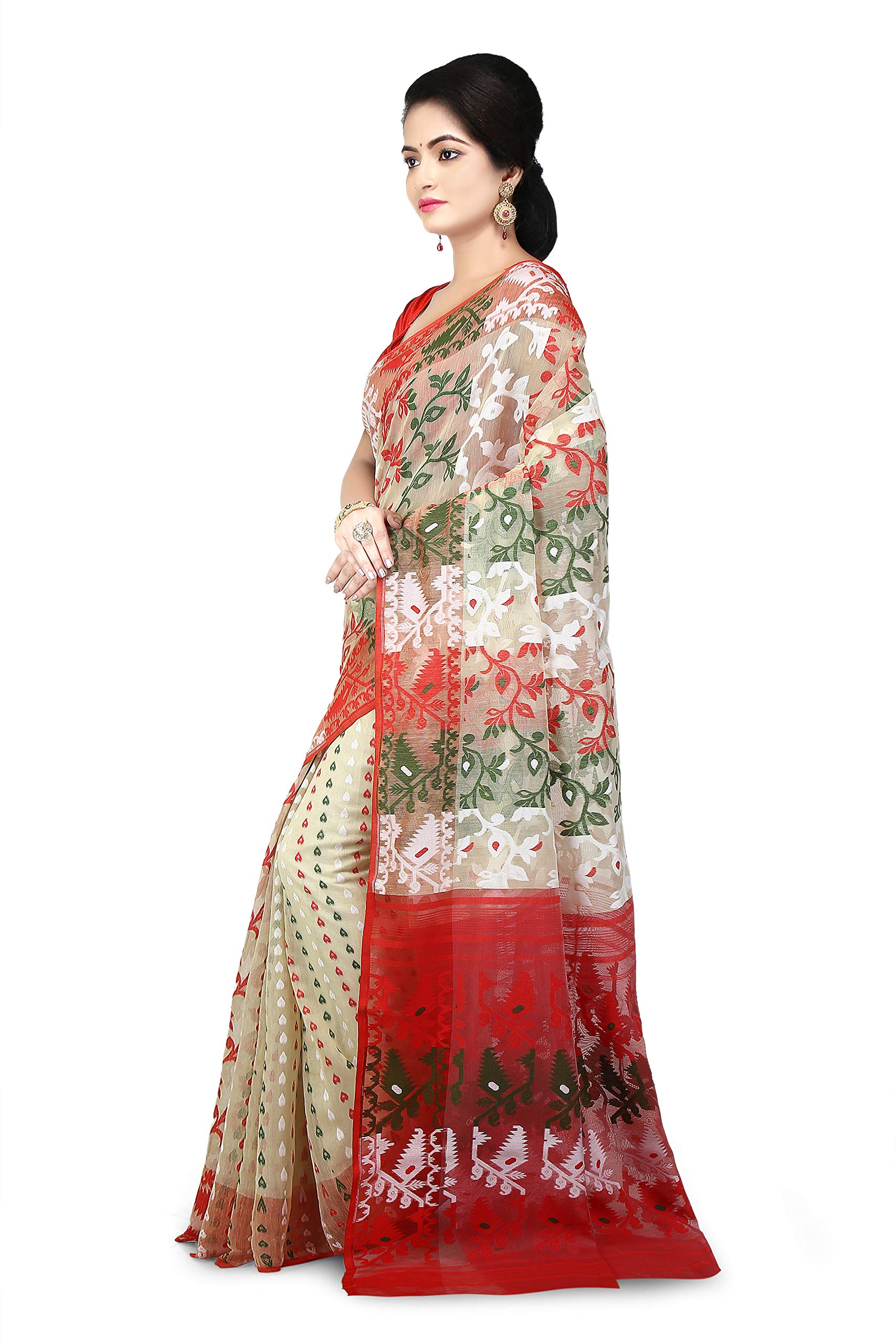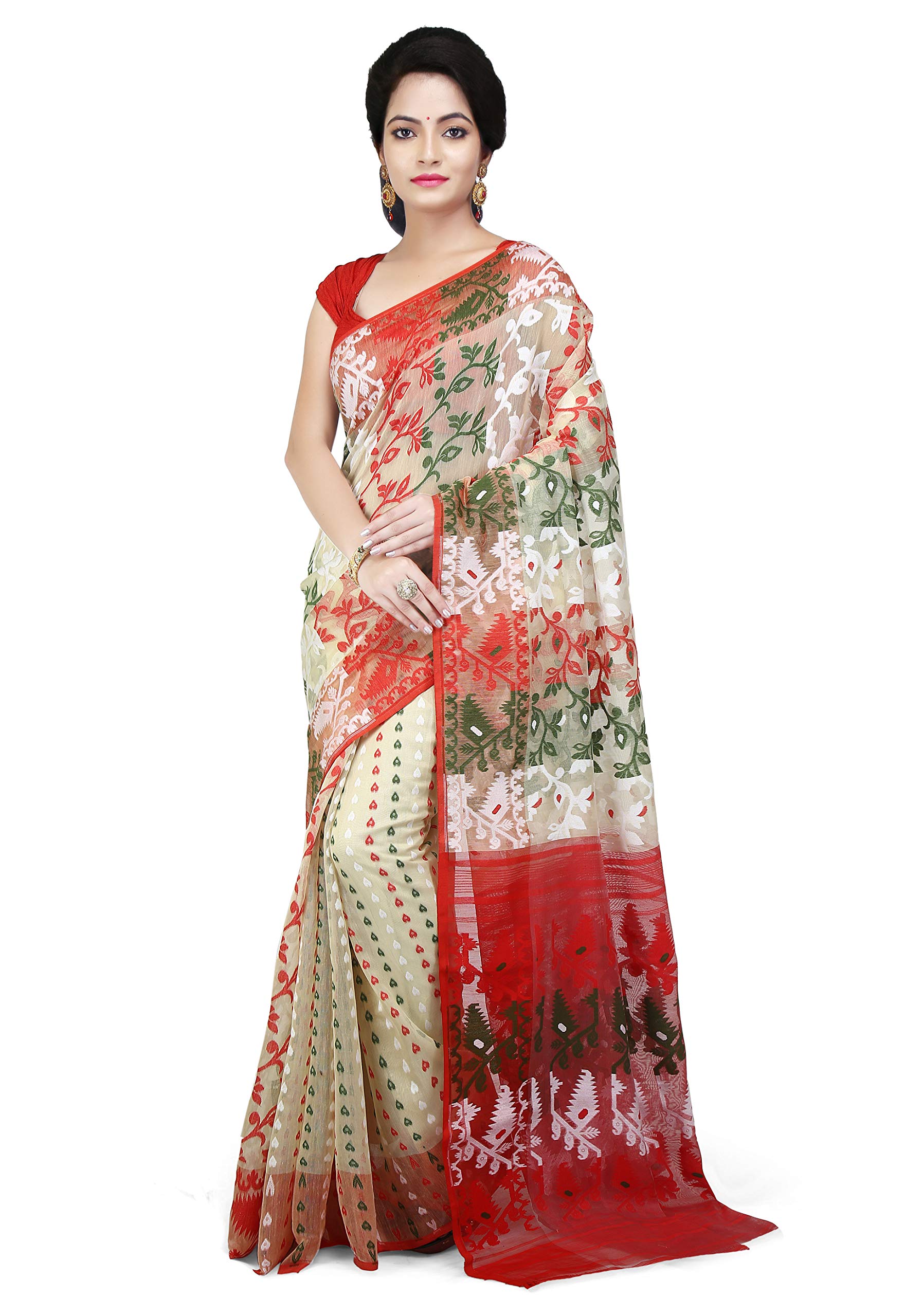 WoodenTant Women's Jamdani Cotton Silk Saree With Blouse Piece (SDJ25_Multicolored)