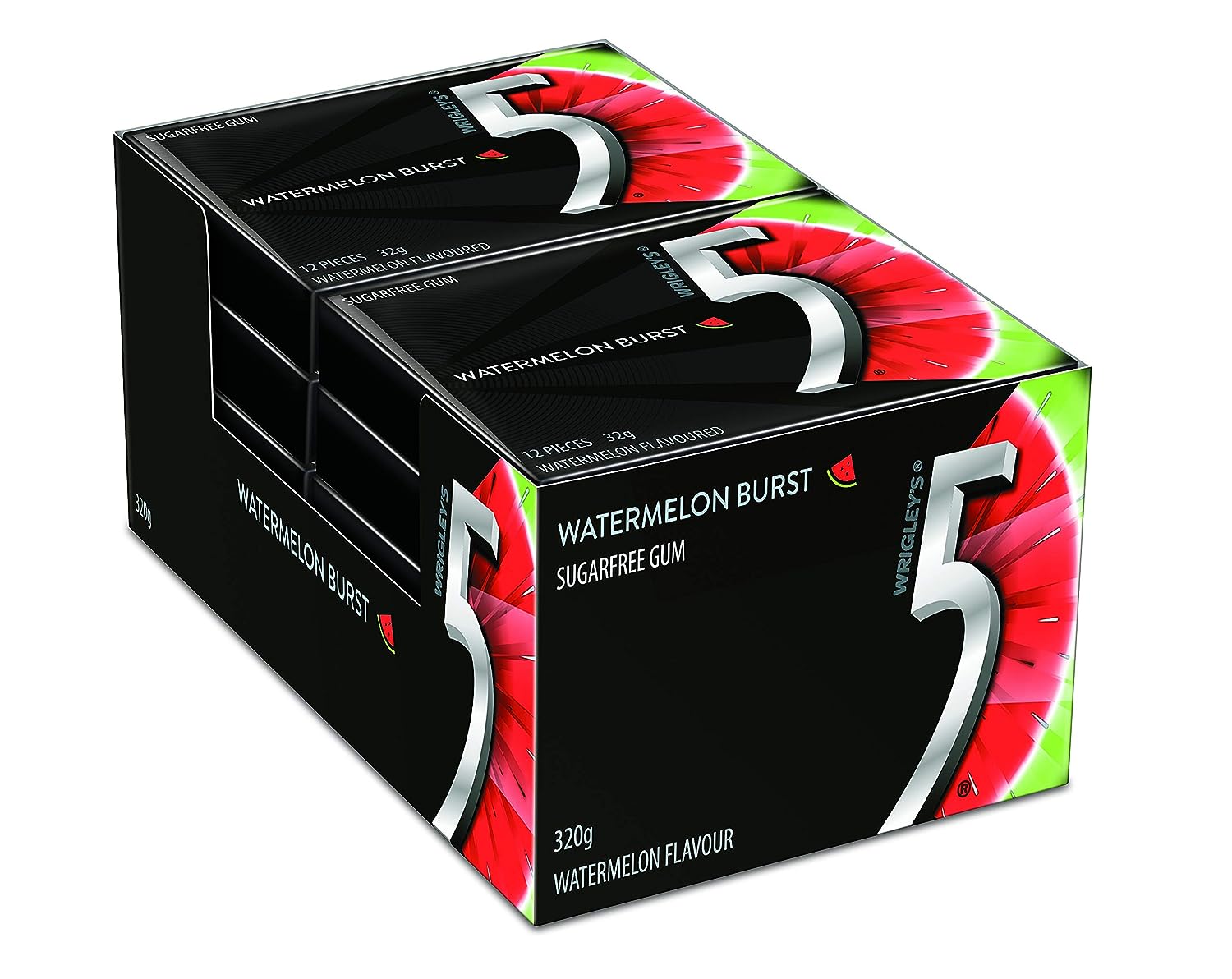 10x Wrigley's 5 Gum Watermelon Burst Sugarfree Gum - Pack of 10 - 32g each