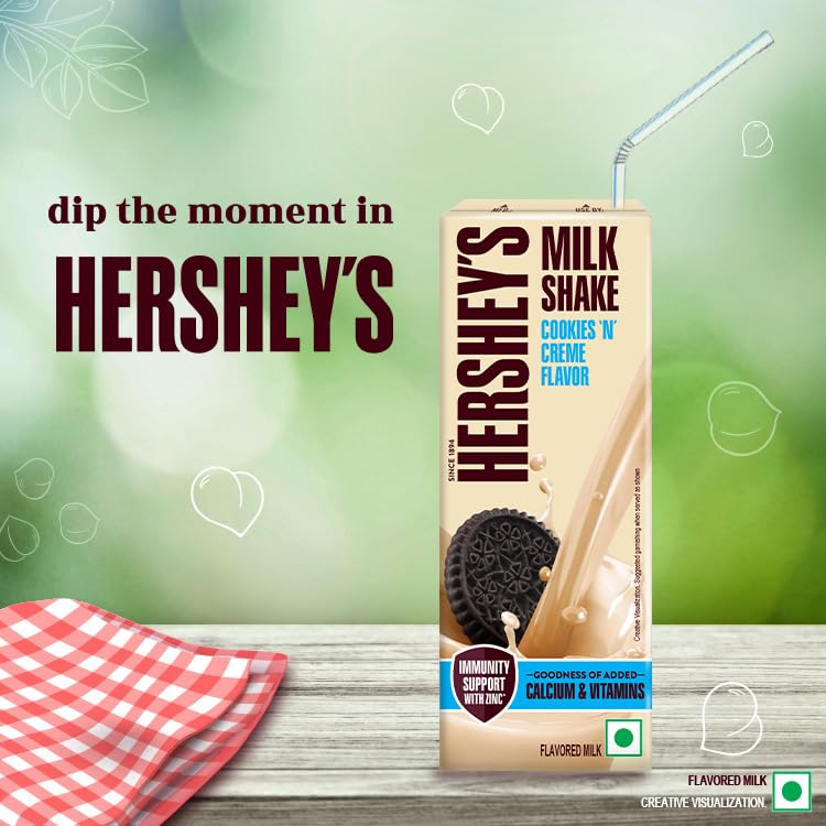 HERSHEY'S Cookies N Cream Flavored Milkshake | Enriched with Calcium | 180Ml - Pack of 6 - Cookies N Cream Flavor
