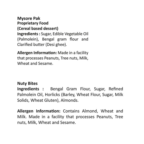 Mysore Pak Signature 400gm & Sugarless Nuttybite 400gm
