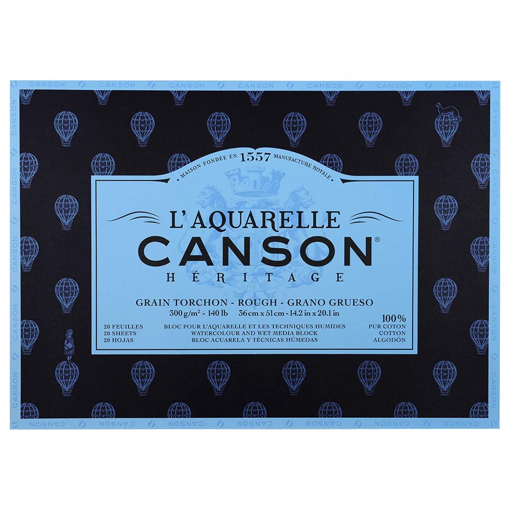 Canson Héritage Cotton 300 GSM Rough 36 x 51 cm Paper Block(White, 20 Sheets)
