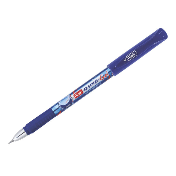 FLAIR Super Smooth Rapid Gel Pen | Tip Size 0.5 mm | Elegant Metal Clip with Soft Rubber Grip | Waterproof Ink for Smudge Free Writing | Ideal for School, Collage & Office | Blue Ink, Jar Pack of 25