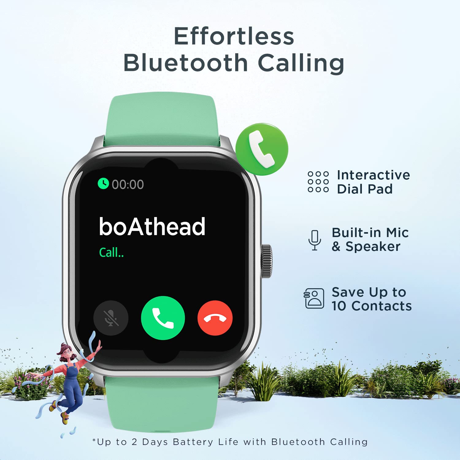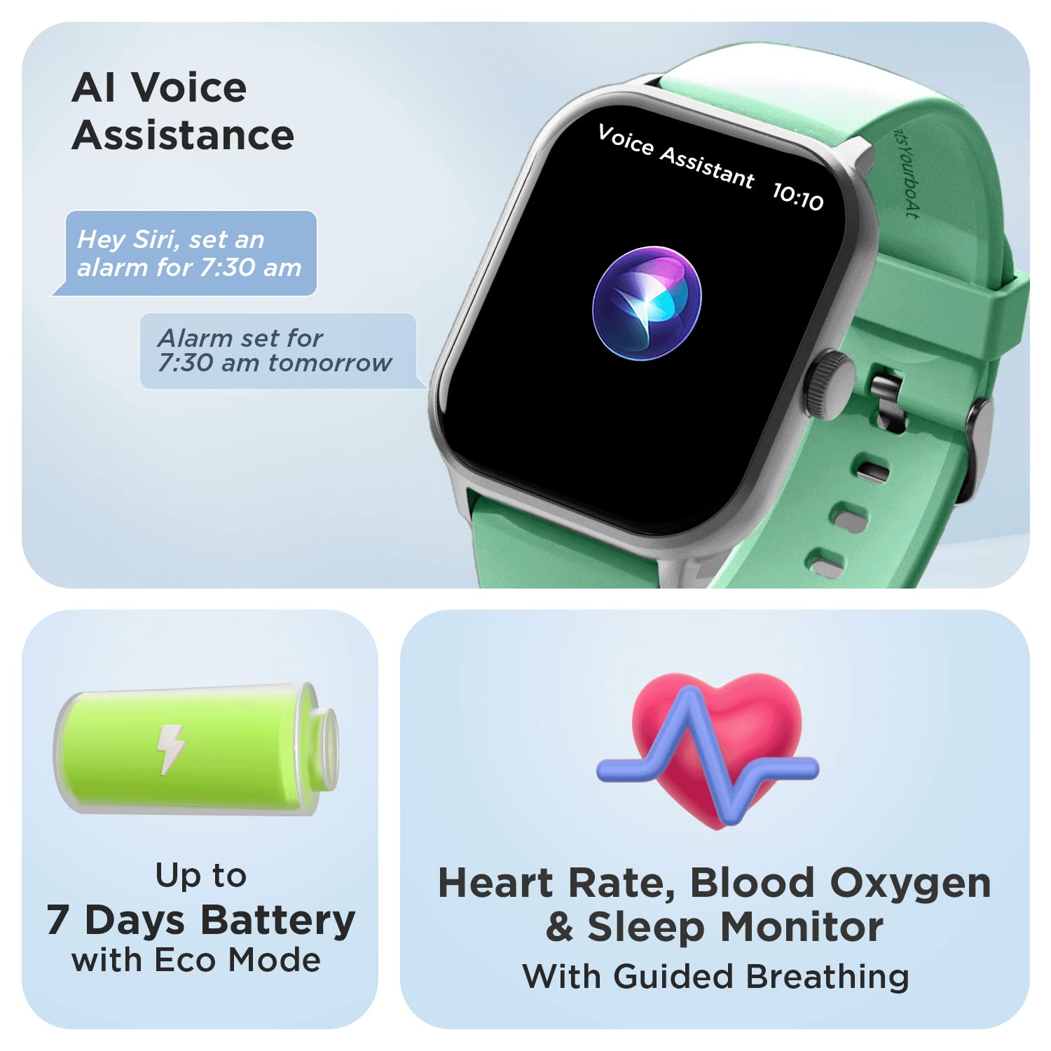boAt Wave Edge Smart Watch with 1.85" HD Display, Advanced Bluetooth Calling Chip, Functional Crown, 100+ Sports Modes,Widget Control,AI Voice Assistance,Inbuilt Games, IP68(Sage Green)