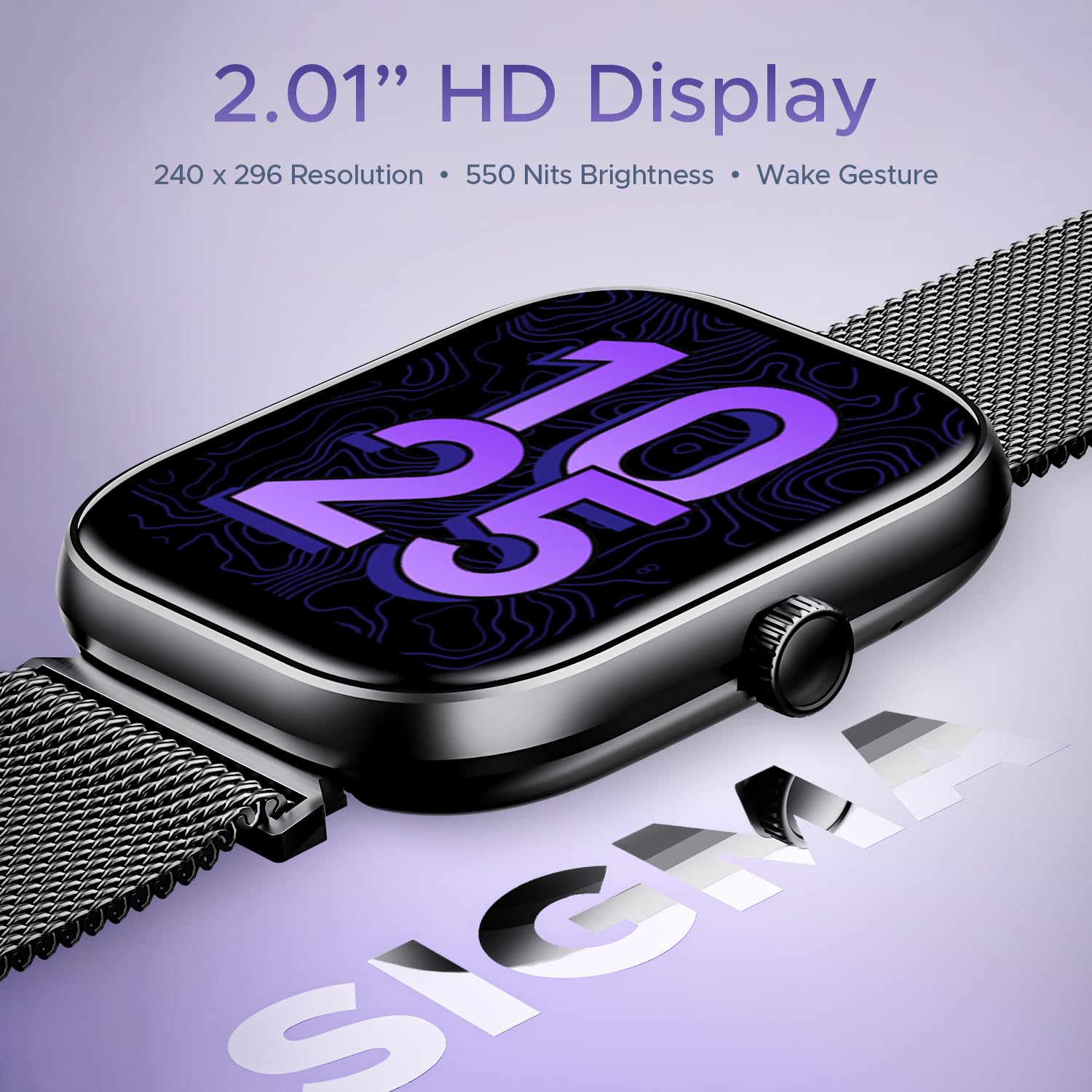 boAt Wave Sigma Smartwatch with 2.01" HD Display,Bluetooth Calling, Coins, DIY Watch Face Studio, 700+ Active Modes, HR&SpO2 Monitoring, Energy and Sleep Scores,IP67(Metal Black)