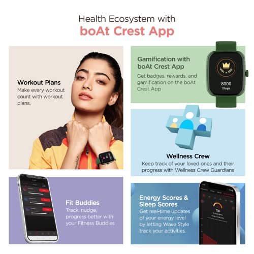boAt Wave Style Smart Watch with 1.69" Square HD Display, DIY Watch Face Studio, Coins,HR & SpO2 Monitoring,7 Days Battery Life, Crest App Health Ecosystem, Multiple Sports Modes(Olive Green)