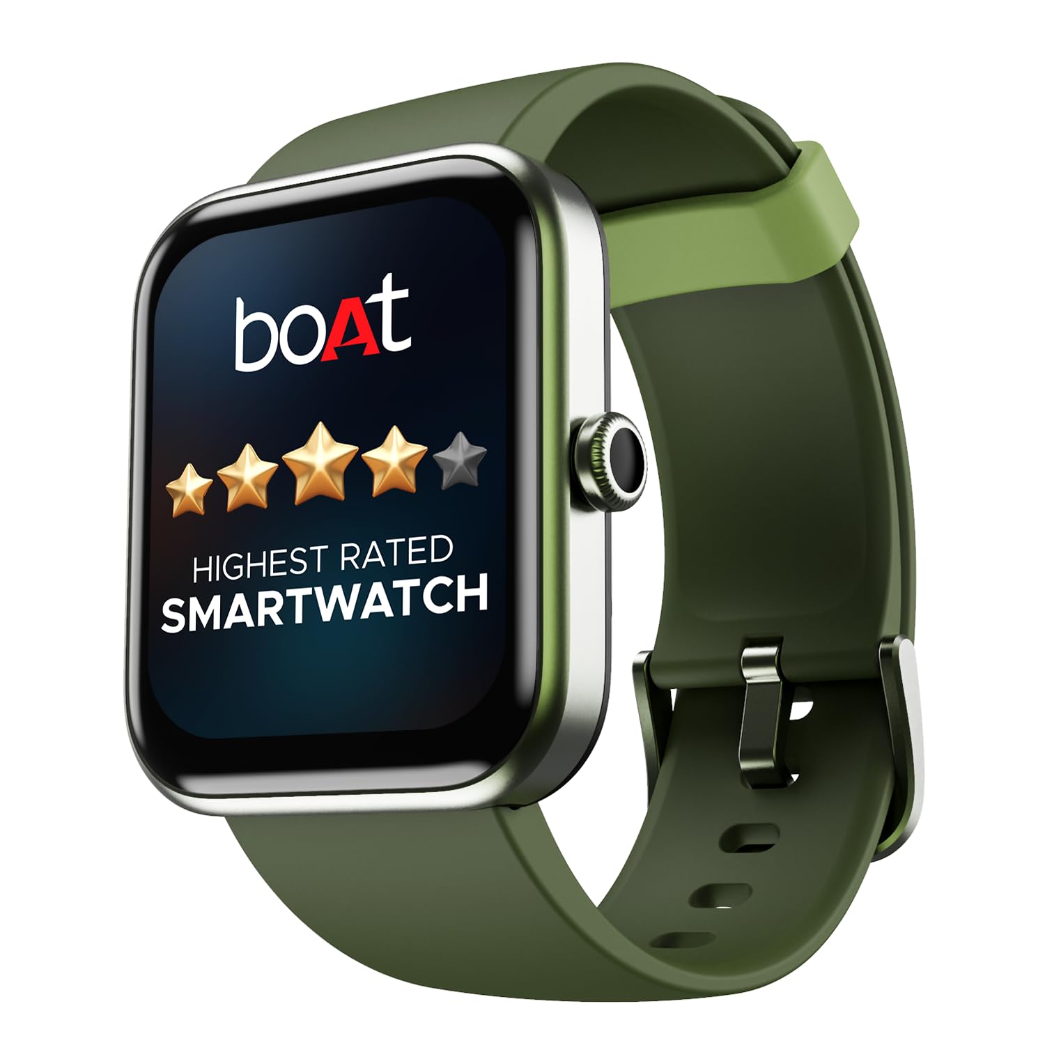 boAt Xtend Smart Watch with Alexa Built-in, 1.69” HD Display, Multiple Watch Faces, Stress Monitor, HR & SpO2 Monitoring, 14 Sports Modes, Sleep Monitor, 5 ATM & 7 Days Battery Life(Olive Green)