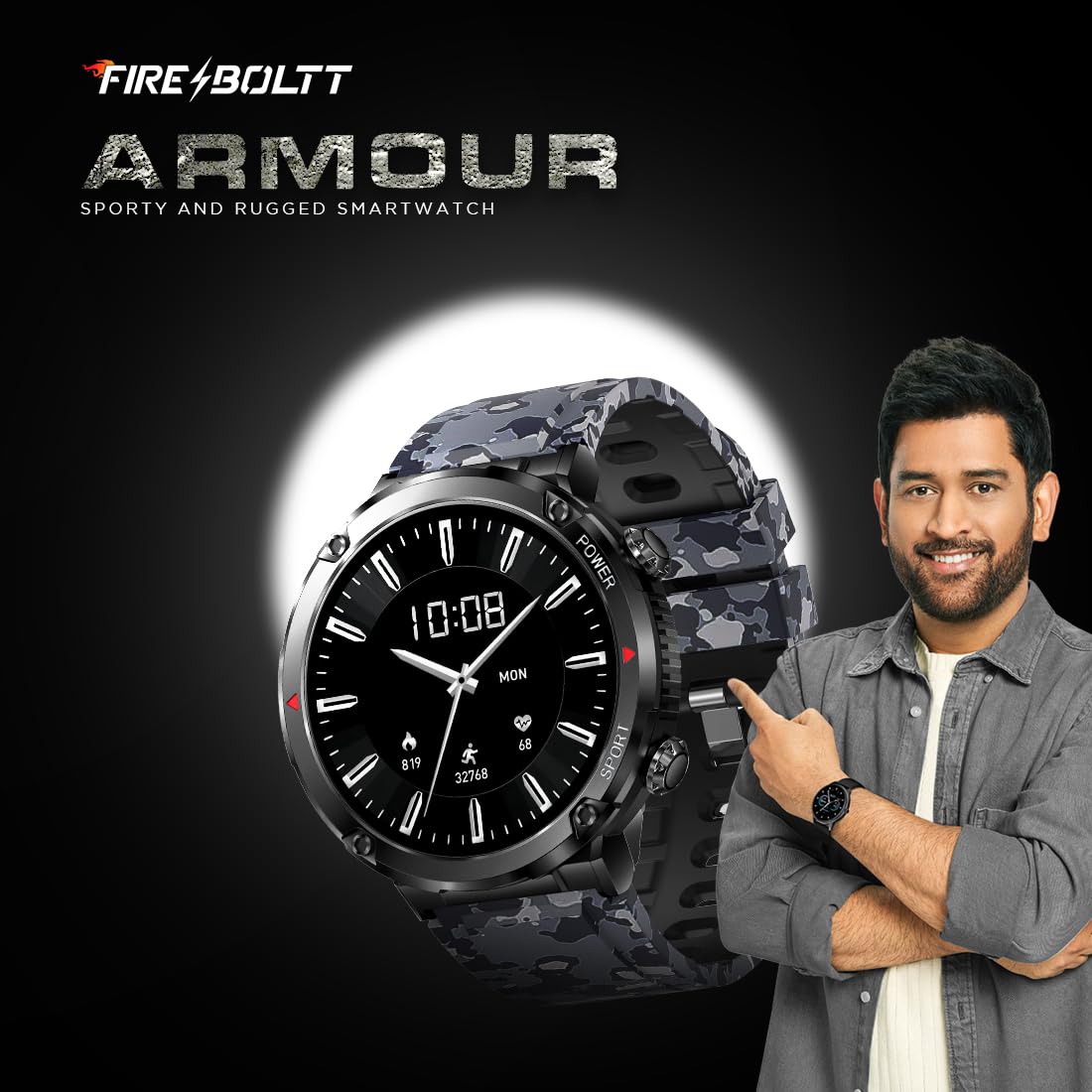 Fire-Boltt Armour, Sporty Rugged Outdoor Smart Watch with a 1.6" High-Resolution HD Display, Shockproof Metal Body, Bluetooth Calling 600 mAh Battery