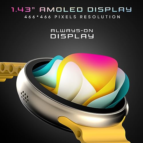 Fire-Boltt Asteroid 1.43” Super AMOLED Display Smart Watch, One Tap Bluetooth Calling, 466 * 466 px Resolution, 123 Sports Modes, in-Built Voice Assistance, 350mAh Large Battery (Yellow)