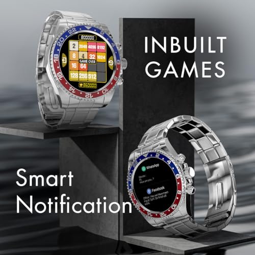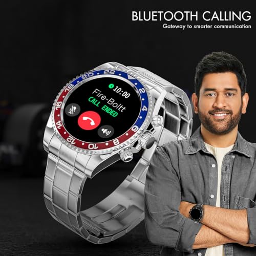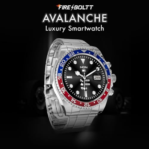 Fire-Boltt Avalanche Luxury Stainless Steel Smart Watch, Bluetooth Calling with 1.28” HD Display, 2 Button Pushers, Voice Assistance, Multiple Sports Modes, Health Suite, IP67 Resistance. (Blue Red)