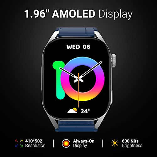 Fire-Boltt Emperor AMOLED 1.96" Display, Bluetooth Calling Smartwatch, AI Voice Assistant, 100+ App Based Sports Modes, Rotating Crown with Always On Display (Blue)