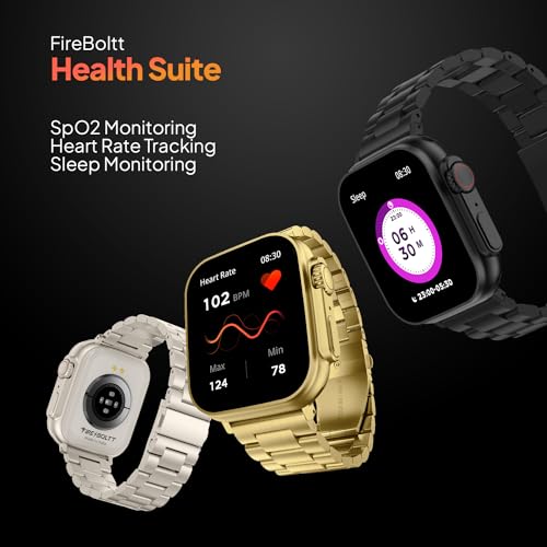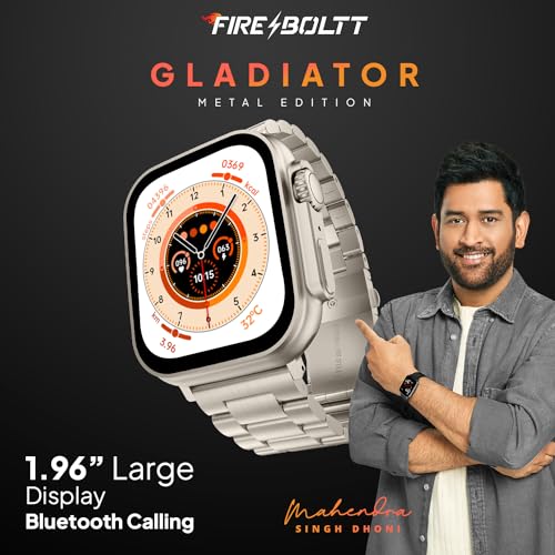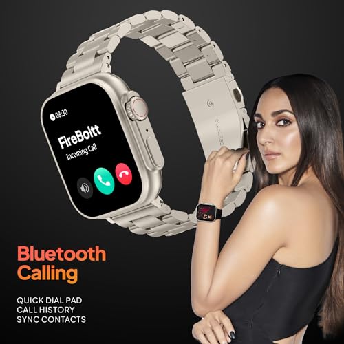 Fire-Boltt Gladiator 1.96" Biggest Display Luxury Stainless Steel Smart Watch with Bluetooth Calling, Voice Assistant &123 Sports Modes, 8 Unique UI Interactions, 24/7 Heart Rate Tracking (Light Gold)