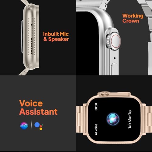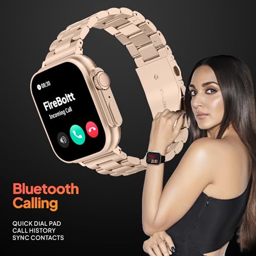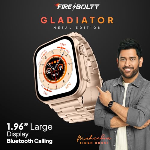 Fire-Boltt Gladiator 1.96" Biggest Display Luxury Stainless Steel Smart Watch with Bluetooth Calling, Voice Assistant &123 Sports Modes, 8 Unique UI Interactions, 24/7 Heart Rate Tracking (Rose Gold)