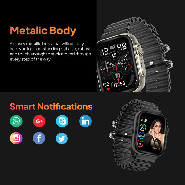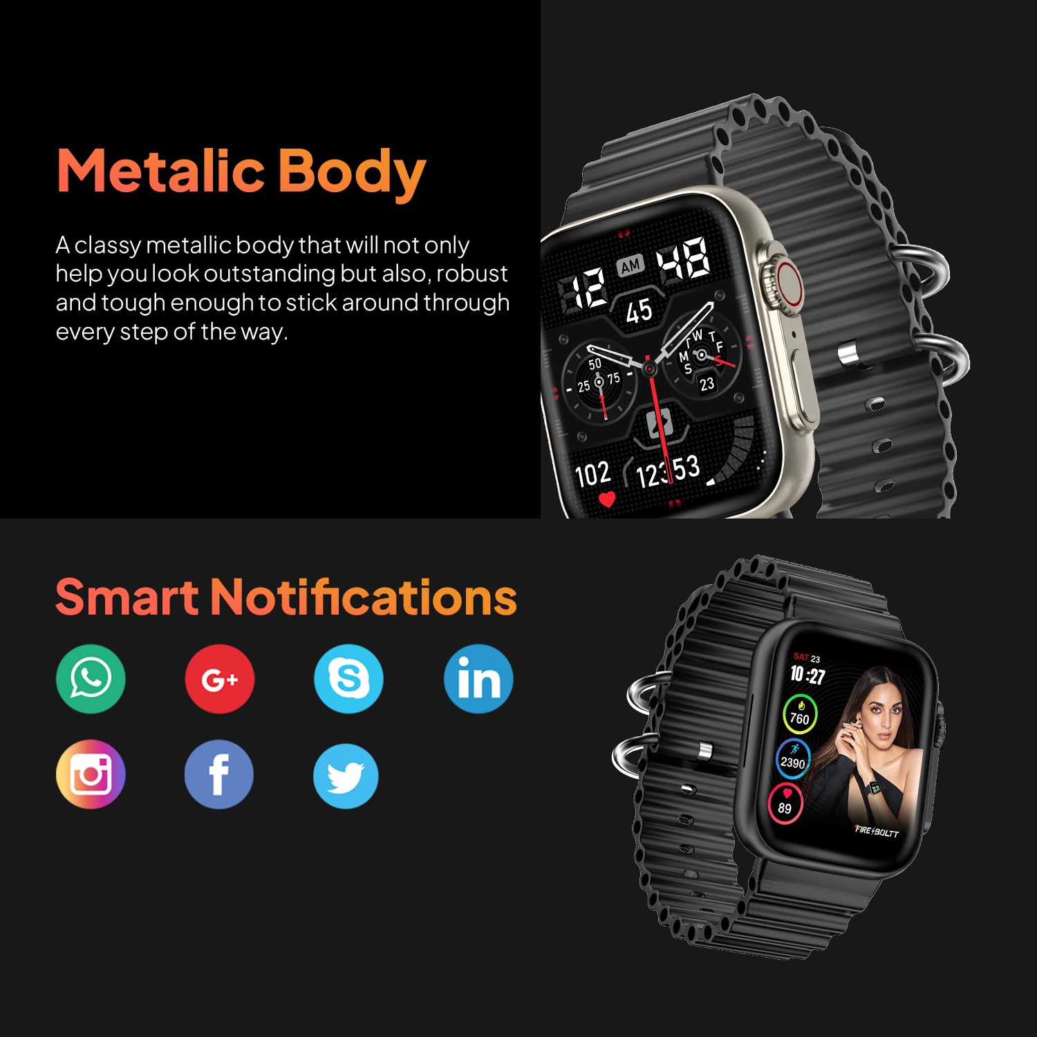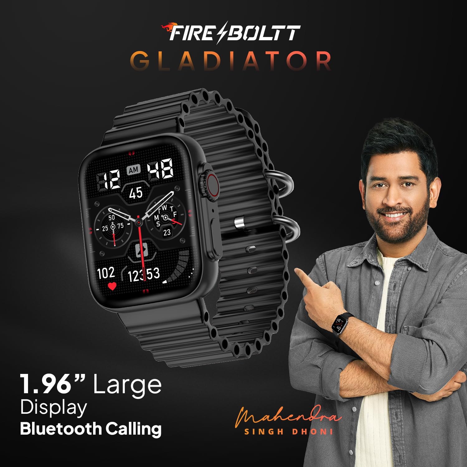 Fire-Boltt Gladiator 1.96" Biggest Display Smart Watch with Bluetooth Calling, Voice Assistant &123 Sports Modes, 8 Unique UI Interactions, SpO2, 24/7 Heart Rate Tracking (Black)