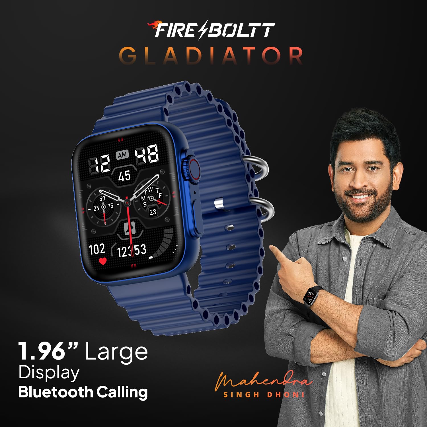 Fire-Boltt Gladiator 1.96" Biggest Display Smart Watch with Bluetooth Calling, Voice Assistant &123 Sports Modes, 8 Unique UI Interactions, SpO2, 24/7 Heart Rate Tracking (Blue)