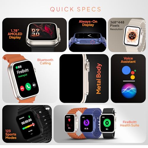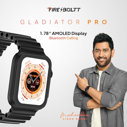 Fire-Boltt Gladiator Pro 1.78" AMOLED Always On Display, 500 NITS Brightness, 123 Sports Modes, Bluetooth Calling, 360° Health Monitoring, Voice Assistant (Black)