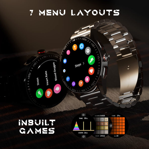 Fire-Boltt Invincible Plus 1.43" AMOLED Display Smartwatch with Bluetooth Calling, TWS Connection, 300+ Sports Modes, 110 in-Built Watch Faces, 4GB Storage & AI Voice Assistant (Black)
