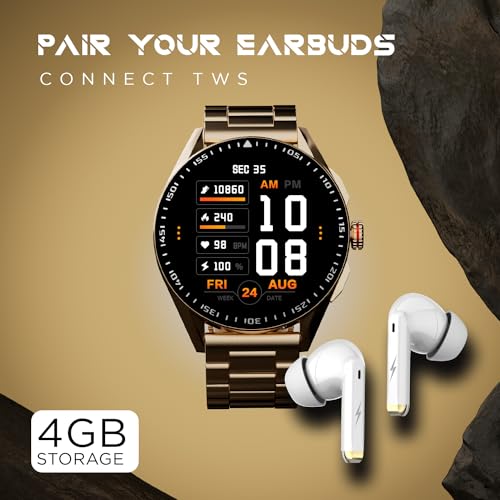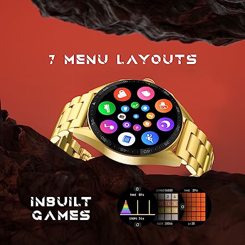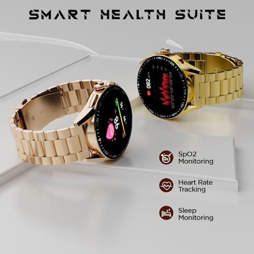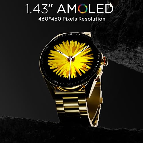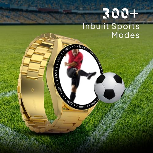 Fire-Boltt Invincible Plus 1.43" AMOLED Display Smartwatch with Bluetooth Calling, TWS Connection, 300+ Sports Modes, 110 in-Built Watch Faces, 4GB Storage & AI Voice Assistant (Gold SS)