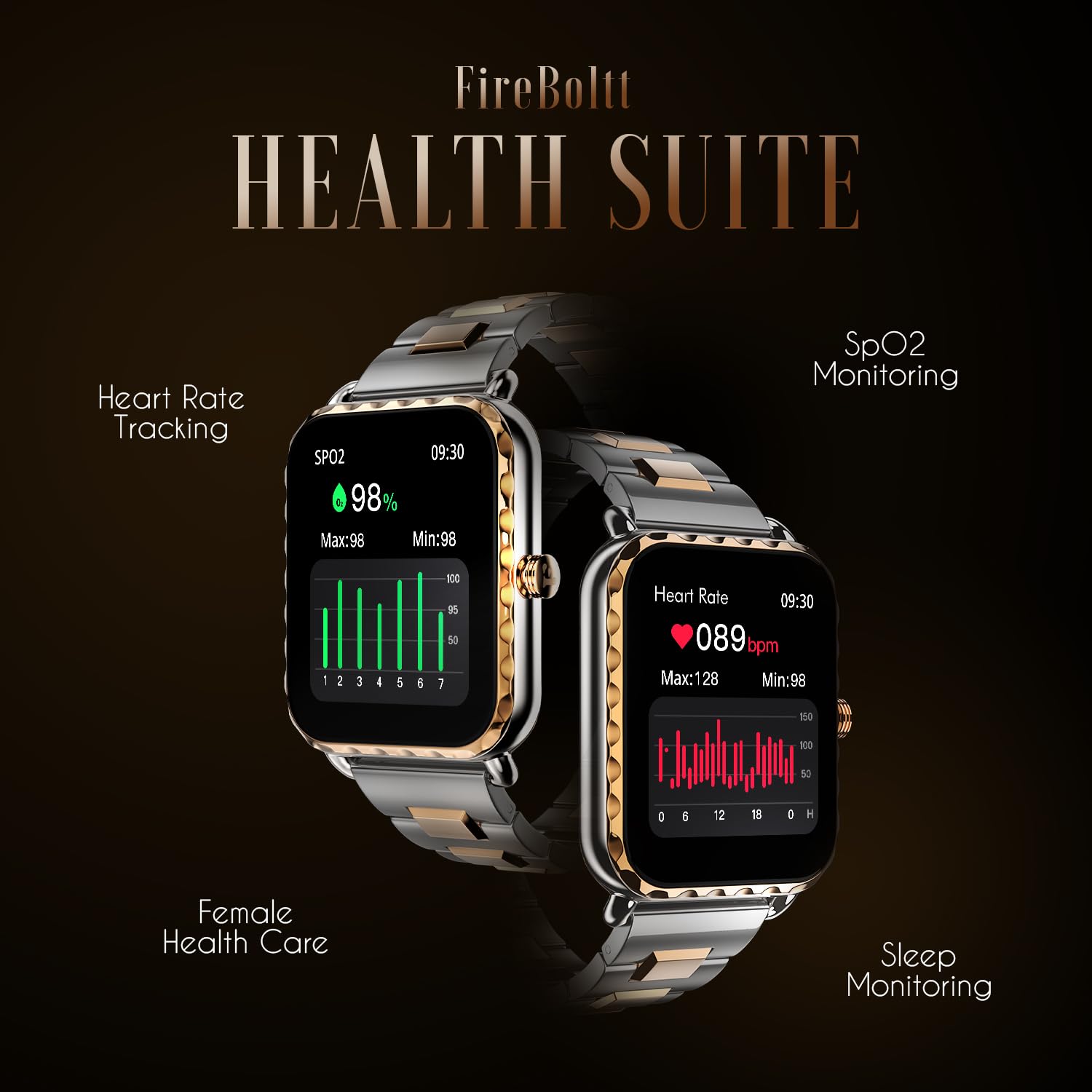 Fire-Boltt Jewel, Luxury Stainless Steel Smart Watch with a 1.85" Display Boasting 320x386 Resolution and 600 NITS Brightness, 60 HZ Refresh Rate, 120 Sports Modes, IP67 Rating