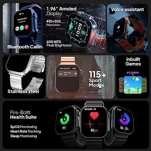 Fire-Boltt Newly Launched Gladiator + 1.96” AMOLED Display Luxury Smartwatch, Rotating Crown, 115+ Sports Modes & Bluetooth Calling, AI Voice Assistant, Gaming