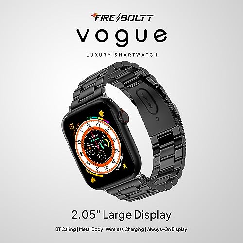 Fire-Boltt Newly Launched Vogue Large 2.05" Display Smart Watch, Always On Display, Wireless Charging, App Based GPS with Bluetooth Calling & 500+ Watch Faces (Chain Black)