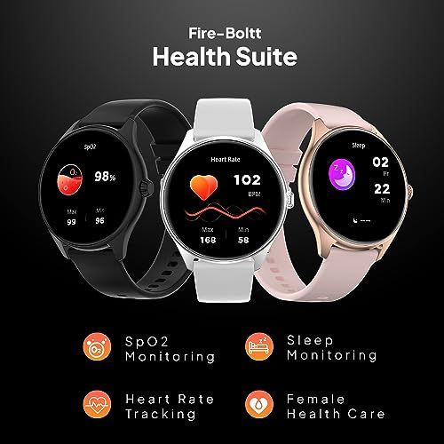 Fire-Boltt Phoenix AMOLED 1.43" Display Smart Watch, with 700 NITS Brightness, Stainless Steel Rotating Crown, Multipe Sports Modes & 360 Health (Gold)