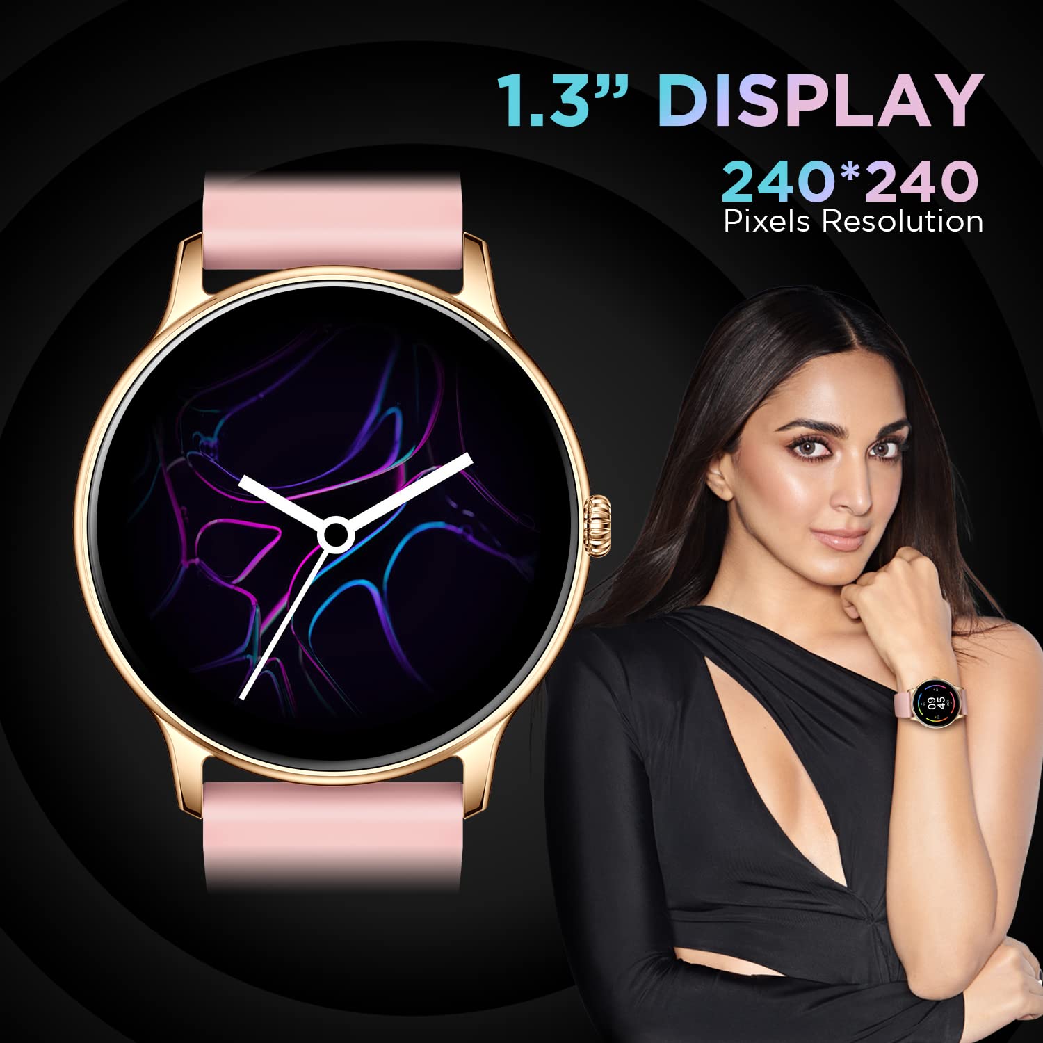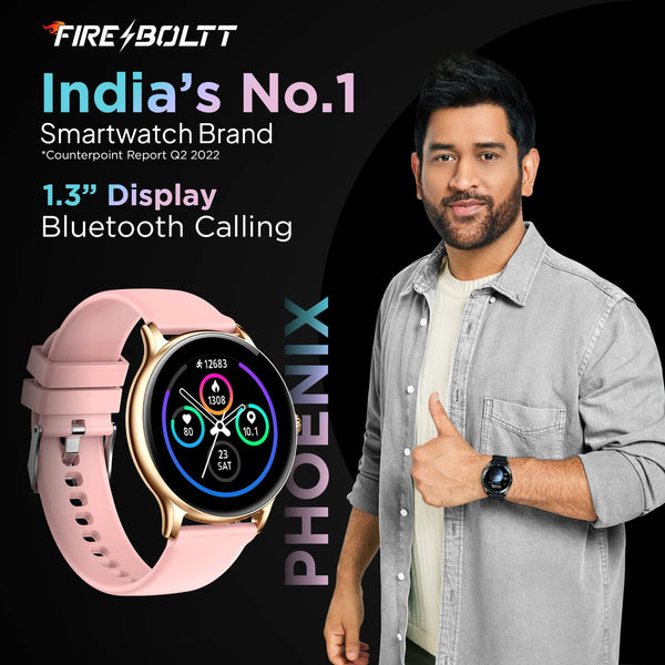 Fire-Boltt Phoenix Smart Watch with Bluetooth Calling 1.3",120+ Sports Modes, 240 * 240 PX High Res with SpO2, Heart Rate Monitoring & IP67 Rating (Gold Pink)