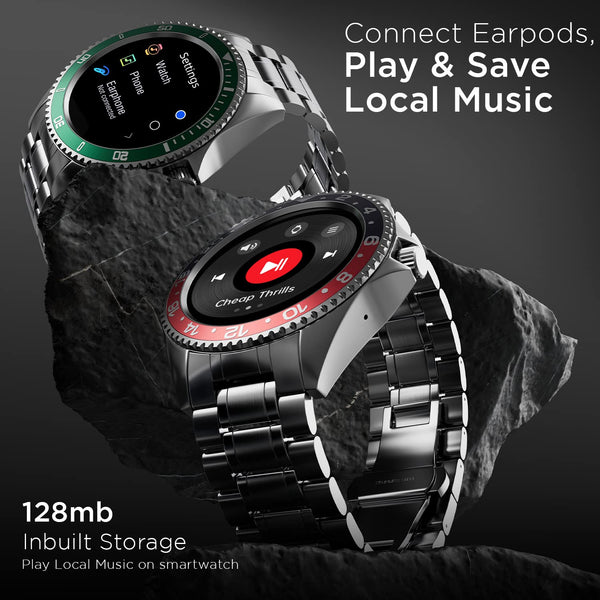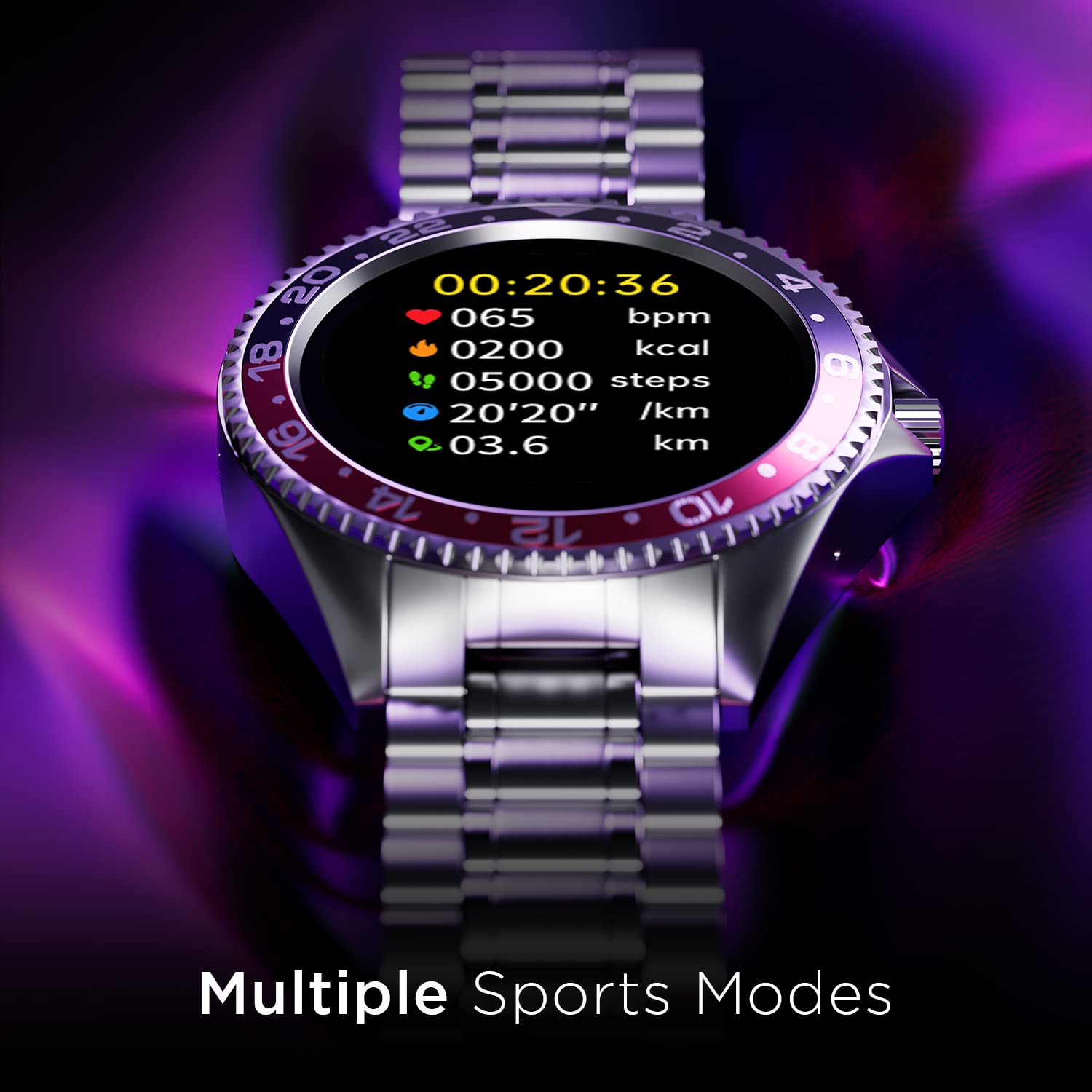 Fire-Boltt Quantum Luxury Stainless Steel Design 1.28" Bluetooth Calling Smartwatch with High Resolution of 240 * 240 Px & TWS Connection, SpO2 Tracking with 100 Sports Modes (Black Red)