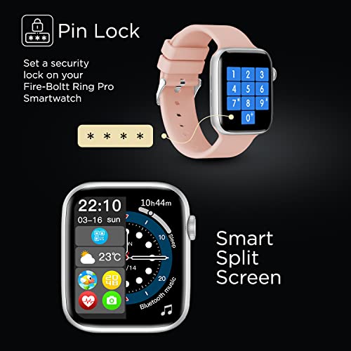 Fire-Boltt Ring Pro Bluetooth Calling, 1.75” 320 * 385px High Res, IP68 & SpO2 Monitoring, Pin Code Locking Functionality & Split Screen Access, Built in Mic & Speaker for HD Calls