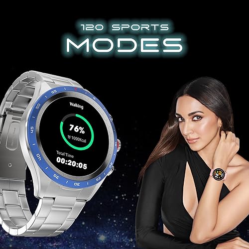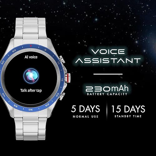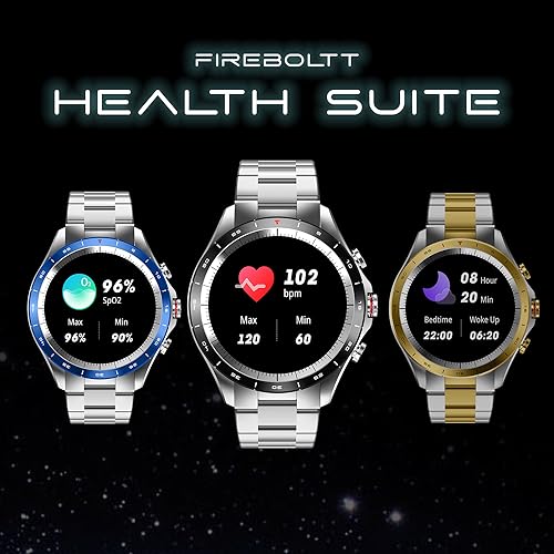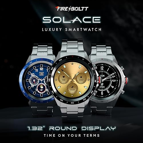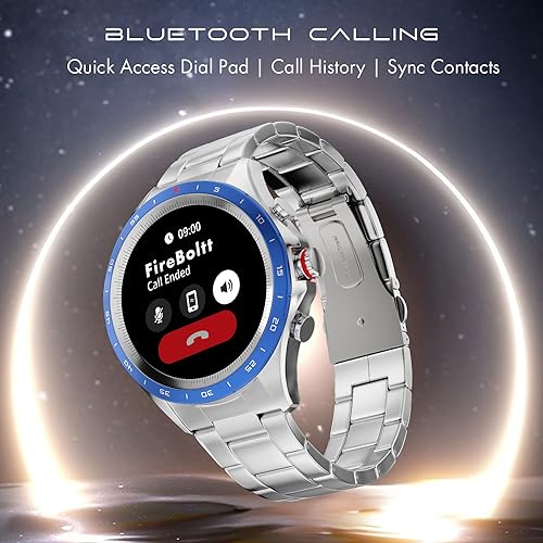 Fire-Boltt Solace Luxury Stainless Steel Smart Watch, 1.32" (33.5mm) Display 360 * 360 px high Resolution with 60Hz Refresh Rate, Bluetooth Calling & 360 Health Monitoring (Blue)