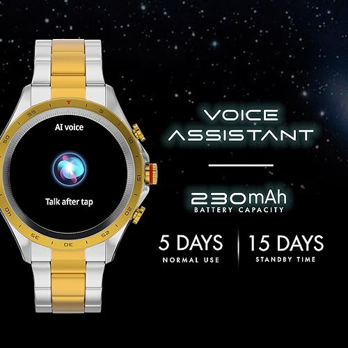 Fire-Boltt Solace Luxury Stainless Steel Smart Watch, 1.32" (33.5mm) Display 360 * 360 px high Resolution with 60Hz Refresh Rate, Bluetooth Calling & 360 Health Monitoring (Gold Silver)