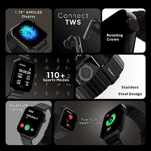 Fire-Boltt Visionary Ultra 1.78" AMOLED, Stainless Steel Luxury Smart Watch, Bluetooth Calling with Rotating Crown & 60Hz Refresh Rate 100+ Sports Mode, TWS Connection (Black)