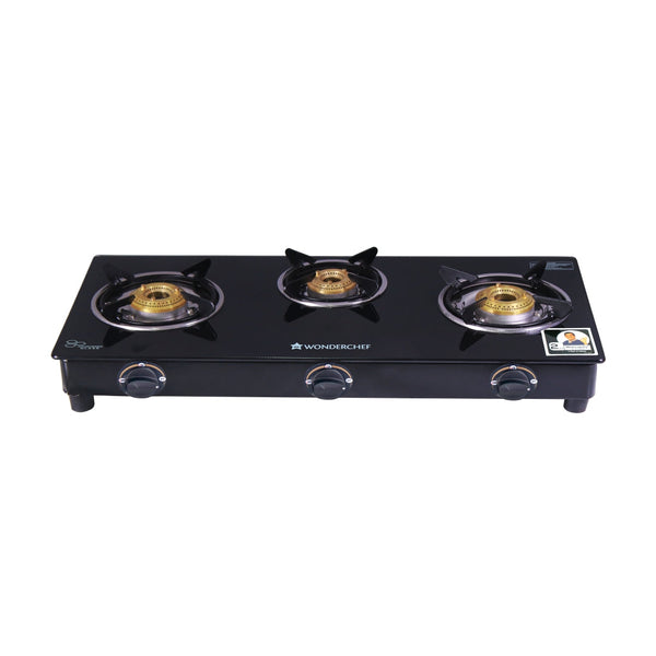 - EFFICIENT COOKING - Highly efficient tri-pin brass burners provide fuel-saving and uniform heating for faster and more efficient cooking. 3 burners (2 medium, 1 small) accommodate various cooking needs.