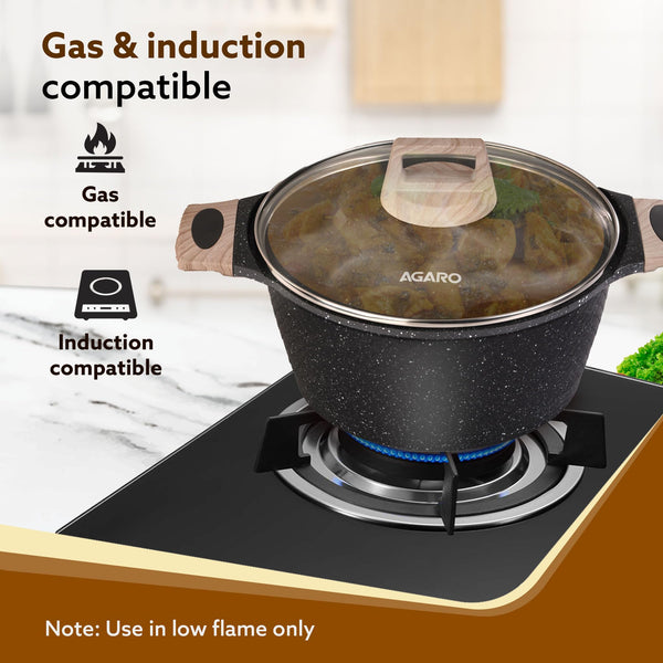 AGARO Imperial Granite Non Stick Cookware Set, 4pcs Cookware Set, 24cm Fry Pan & Casserole with Lid, 16cm Sauce pan with Lid, 28cm Deep Fry Pan with Lid, Cast Aluminium, Gas & Induction Compatible.