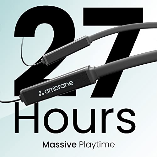 Ambrane Bassband Hyper Wireless Earphones with 27Hrs Playtime,3Hrs Playtime in 10 Mins Charge,Boostedbass Sound,Multifunctional Controls,Voice Assistance,Ipx4 (Black),in-Ear