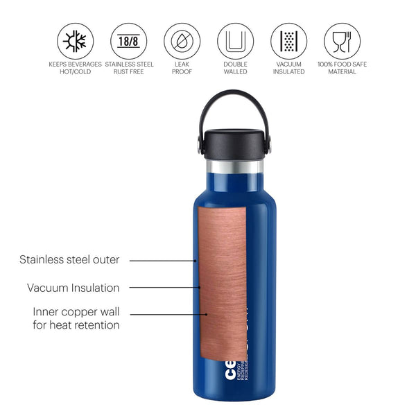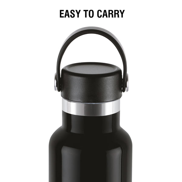 Introducing the Aqua Bliss Flask, an 600ml Vacusteel Water Bottle, designed to revolutionize your drinkware collection. Available in a vibrant spectrum of colors, including black, blue, orange, red, and violet, this stainless steel flask not only adds a touch of style but also ensures your beverages stay perfectly hot or refreshingly cold with its advanced vacuum insulation technology. Crafted from food-grade stainless steel, the Cello Black 600ml Vacusteel Flask guarantees both durability and beverage safety, making it your go-to choice for versatile and reliable hydration, regardless of the season or occasion.