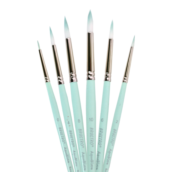 - BRUSTRO AquaBloom Artist's Paint Brushes | Round | Set of 6 - Sizes (0, 2, 4, 6, 8, 10) | Wooden Handle, Comfortable Grip, Synthetic Bristles, Ideal for Watercolour, Gouache, Painting.