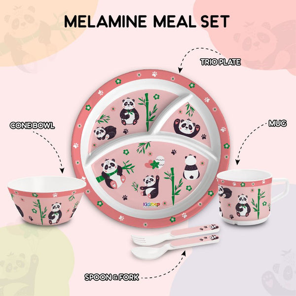 Product Description Introducing the Kidzbee's Melamine collection Set of 5 seamlessly blends safety and style for your little ones. Not only visually appealing, but they also ensure shatterproof reliability and dishwasher safety. The designs are printed with food-grade ink, prioritizing your child's safety during mealtime. Kidzbee's Melaware is not just a delightful addition to your table. It's a promise of trust and a happy, healthy dining experience for your kids! Kidzbee Trioplate comes with a Plate, Bowl, Mug, Fork, and Spoon.