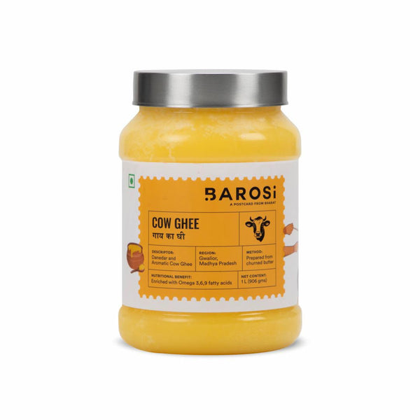 - 100% NATURAL & PURE:Barosi Cow Ghee is made from the fresh, pure milk of grass-fed desi cows. Our ghee is prepared to ensure the highest freshness and quality. It preserves its natural richness, making it a wholesome and healthy choice.