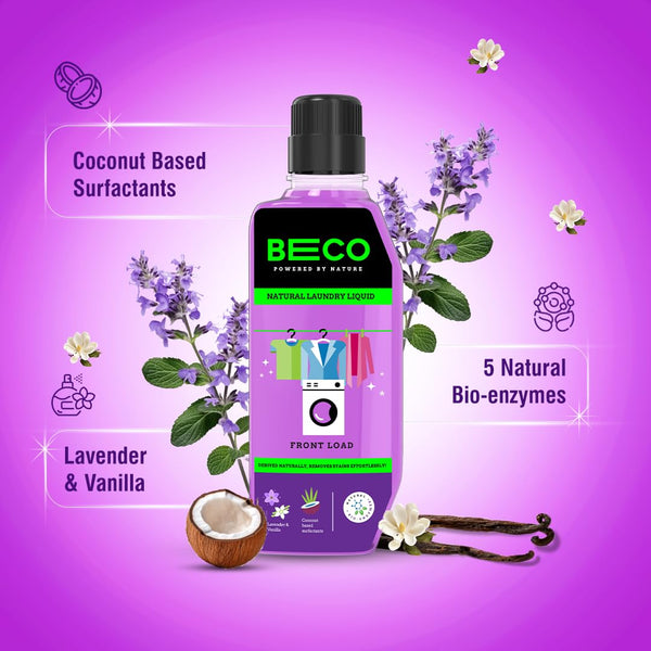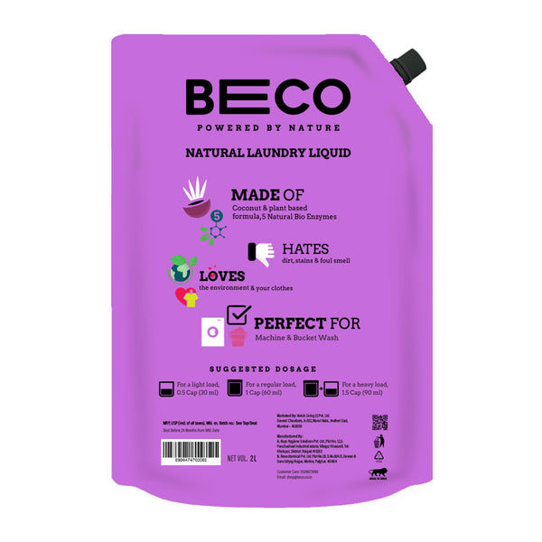 Beco Matic-Front Load Natural Laundry Liquid Detergent| 2 Litre Super Value Refill | Natural Formula for Tough Stain Removal & Fabric Care | No Harsh Chemicals | 100% Ecofriendly