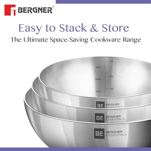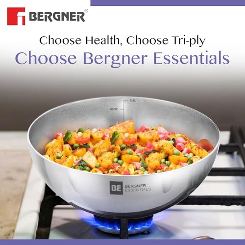 BE Bergner Essential Vrishti Tri-Ply Stainless Steel 18 cm Tasra, Steel Kadai/Tasla without Handle, Even Heat Distribution, Easy To Clean, Induction & Gas Stove Friendly, Silver, 5-Year Warranty