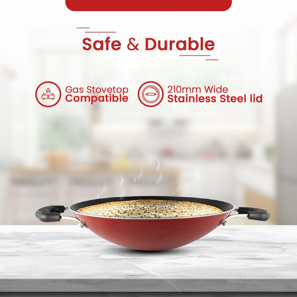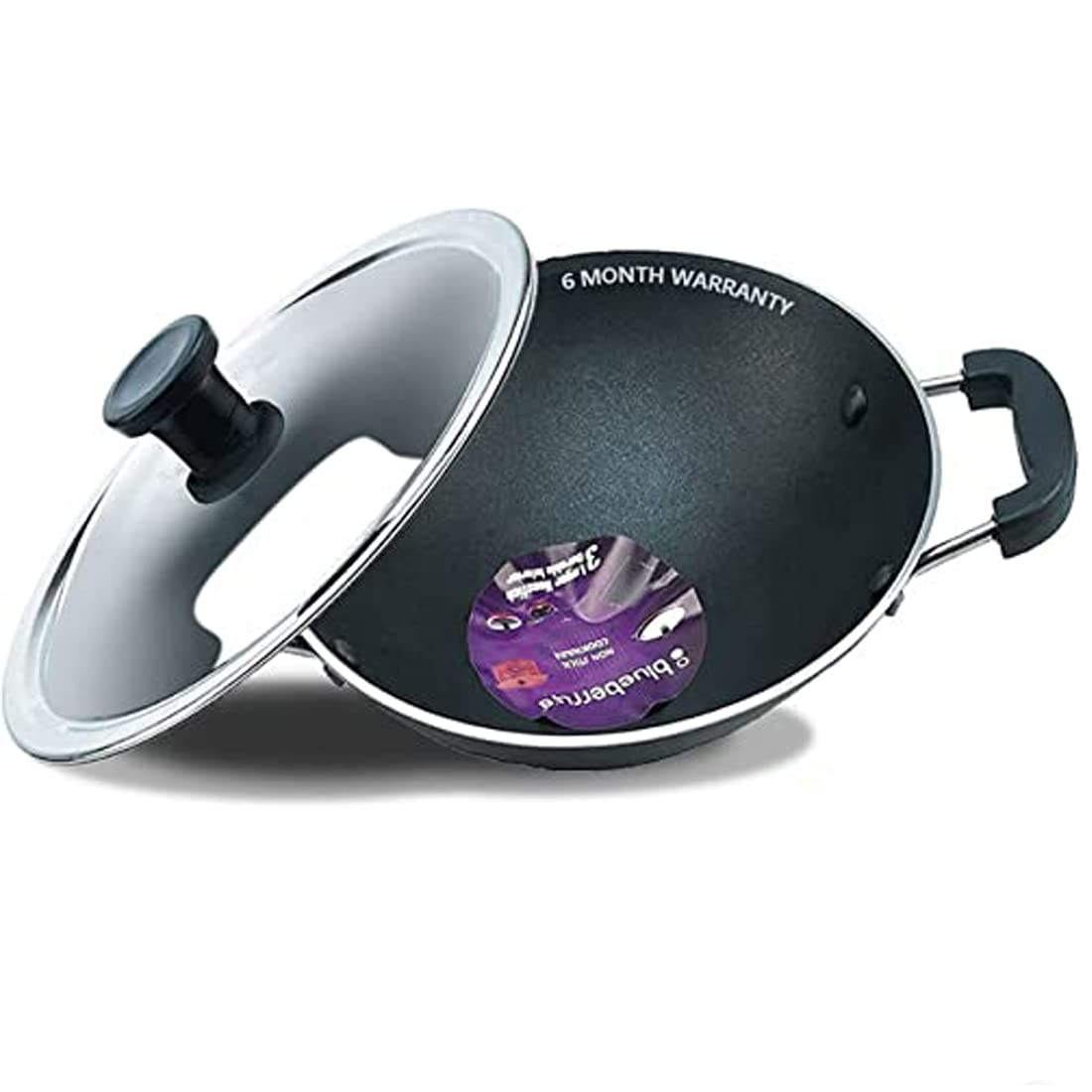 Blueberry's nonstick aluminum Appachatty is an essential kitchen cookware. This pan can be used for cooking multiple items. It comes with a high grade non-stick coating with ergonomic grip handles for ease of use. The heat is distributed evenly due to its spiral bottom design. A fast and an easy way to cook food.