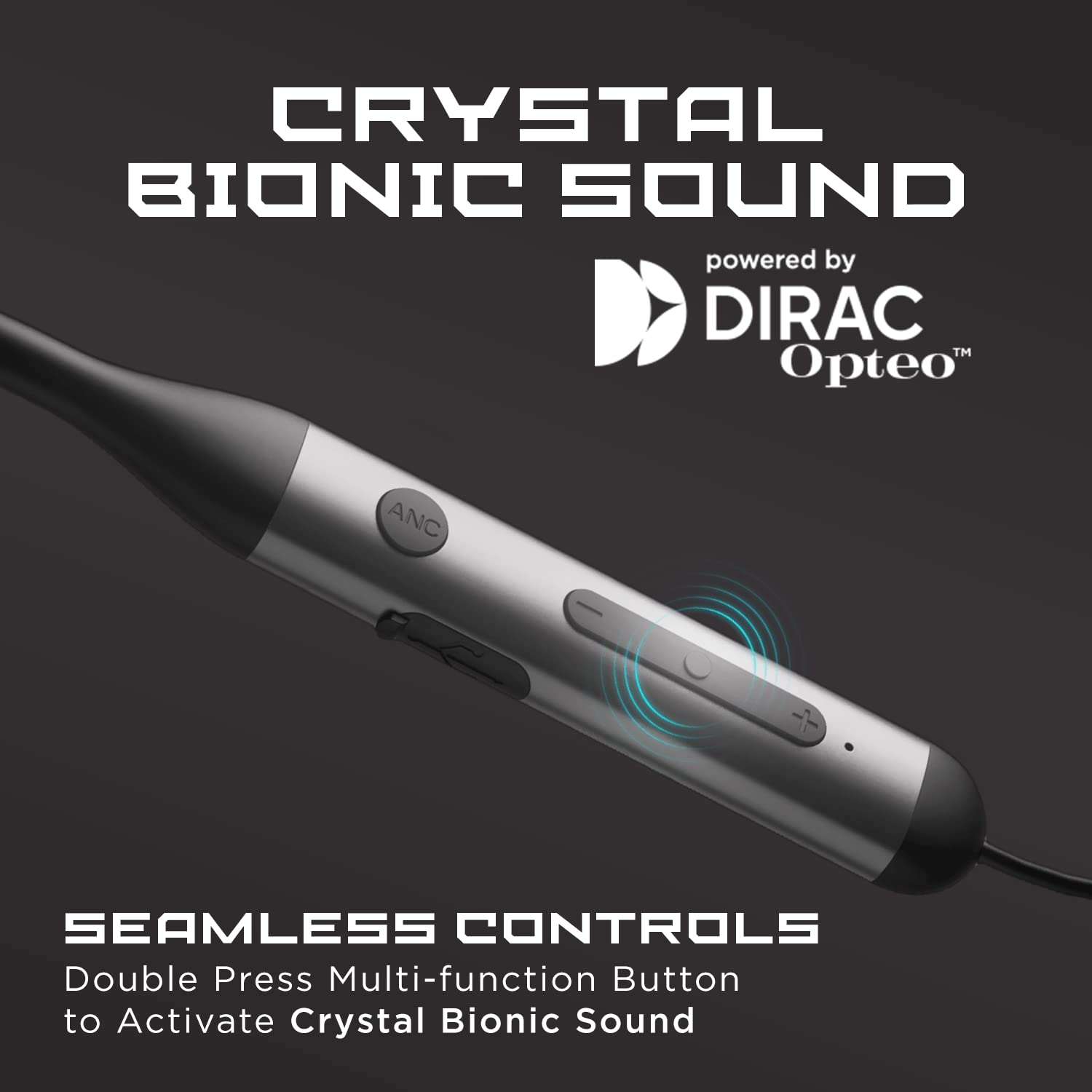 boAt Rockerz 330ANC Bluetooth Neckband in Ear Earphones with mic, Crystal Bionic Sound Powered by Dirac Opteo, ANC, 13mm Drivers, ASAP Charge, 24H Playback & ENx Tech(Gunmetal Black)