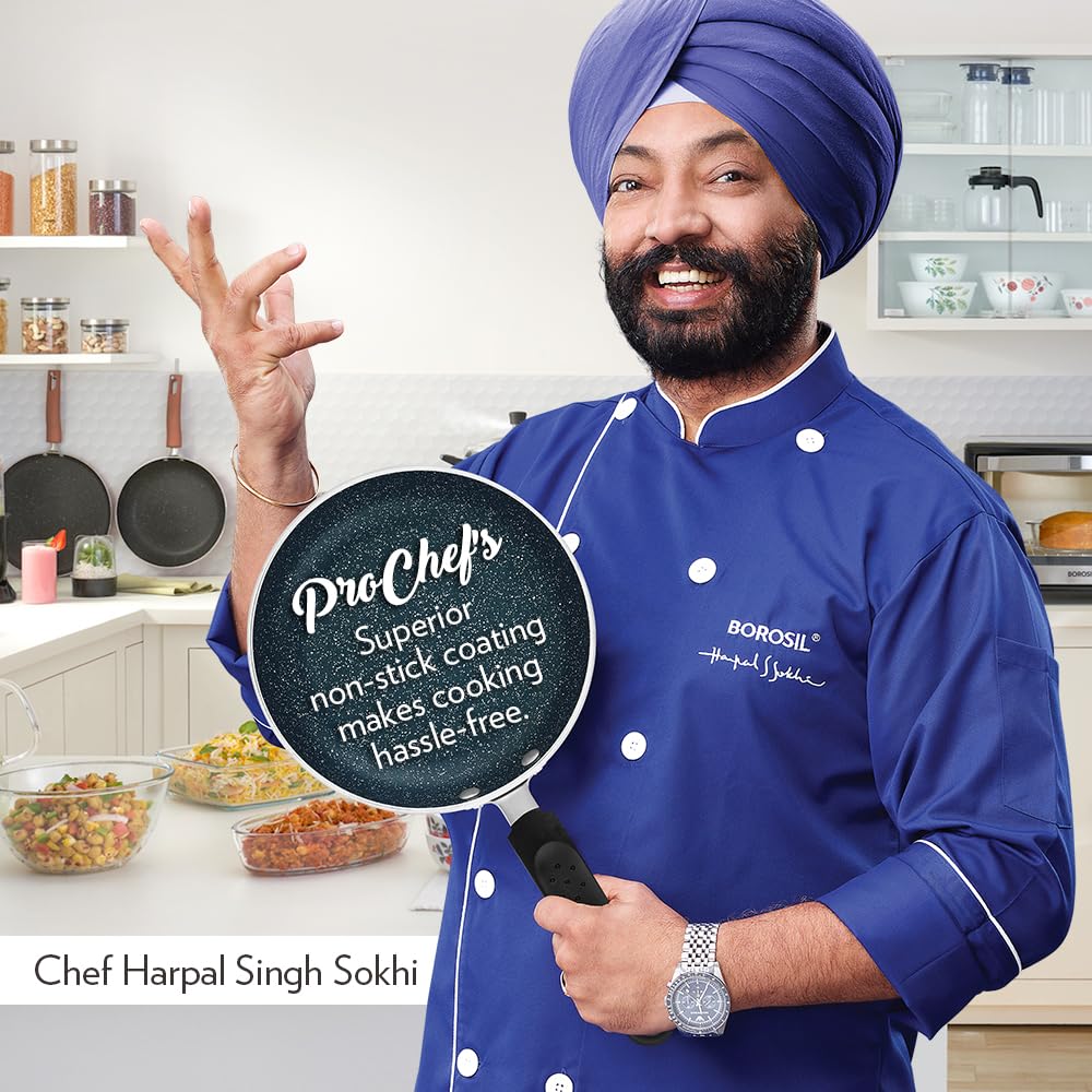 Borosil ProChef Non-Stick Mini Fry Pan 18 cm | Gas Stove Compatible, Thick Uniform Body for Even Heating | PFOA Free, Blue Exterior, Stir Frying Pan for Eggs, Cutlets, 1 Year Warranty