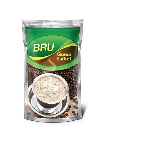Loved by consumers since 1962, Bru Green Label Coffee is Indias first packaged filter coffee with a perfect mix of 53% coffee and 47% chicory. Its lightly roasted ground coffee beans give out a perfect decoction for a rich & smooth flavourful cup that helps rejuvenate your senses. The nitro flush packaging retains its fresh flavour and aroma providing rich tasteful notes. Kick-start your day with a cup of fresh and aromatic Bru Green Label Coffee. So filter a cup, unwind and relax as you enjoy the coffee breaks you deserve. Buy Bru Green Label Coffee now, right here.