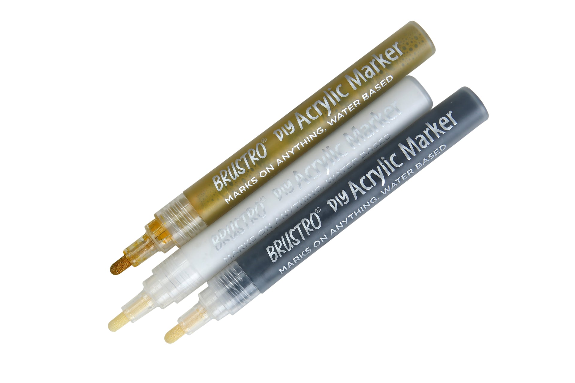 Brustro Acrylic (DIY) Marker Set of 3 - Black, White & Gold