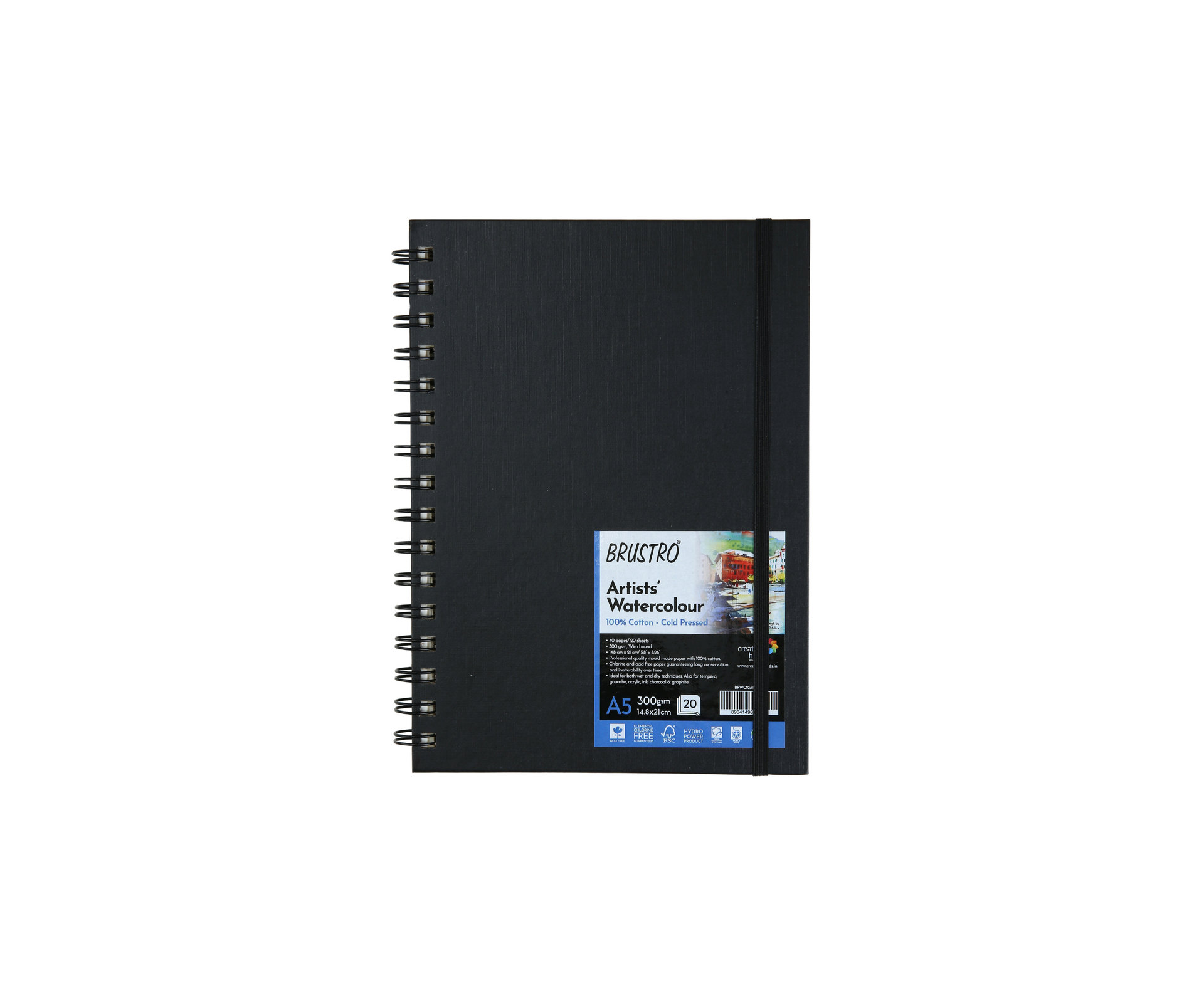- BRUSTRO Artist 100% Cotton Watercolour Wiro Bound Journal Cold Pressed 300 GSM, A5 – (20 Sheets)